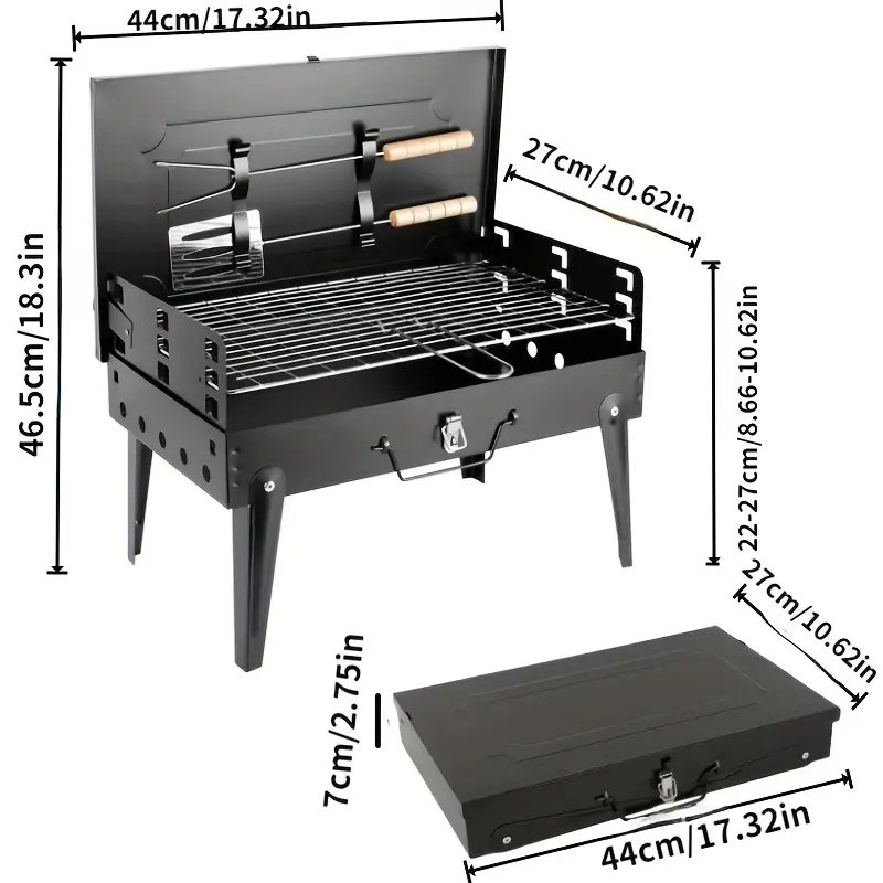 1pcs box home outdoor folding grill portable multifunctional camping barbecue grill, comes with tools, easy to use, suitable for outdoor camping