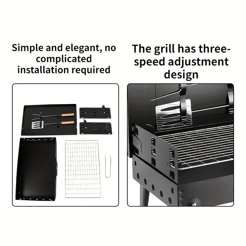 The multifunctional cover of the portable charcoal grill can not only be used to block the wind and dust when it is open, don't have to worry about getting dirt in your food and stinging eyes from smoke, but the cover with a buckle design can also be used to fix barbecue tools, such as forks and spades, which is very convenient.[Advanced Folding Design Portable Grill]The portable grill charcoal adopts an advanced folding design, saves space, and is super easy to set up! Forget screws and tools, simply unfold the legs on both sides, and you’ll have a stable and portable BBQ grill ready. Enjoy the ultimate cookout experience anywhere and anytime! Thanks to the handles and compact size, it is easy to carry and take away, perfect for camping, picnics, beach, or barbecue party at least 3-5 people at a time.[Innovative 3 Adjustable Heights BBQ Grill]Our small charcoal grill can adjust the grilling net through three heights (high, medium, and low) to control different firepower, easier to cook more delicious and tasty food. Get together with your families, and friends to have fun with BBQ grill charcoal cooking and grilled flavor.[Larger Cooking Area Charcoal Grill]This small BBQ grill with a surface of over 167 sq. inches, you’ll easily be able to grill for a party of 3 or more, with plenty of room for you to grill meat and vegetables at the same time. Meanwhile, our barbecue grill charcoal includes a wealth of grilling accessories to give you a better grilling experience without the need to purchase additional tools, very convenient and highly valuable.[Superior Camping Grill & Excellent Service]The small outdoor grill is supported by a sturdy heat-resistant frame that also features side air vents to get your charcoal burning better, which is heat and scratch resistant, ensuring that the BBQ grills won't rust and be easy to clean after a long time of use. Each small grill includes a 36-MONTH WARRANTY. All you need to do is send us an email and our unparalleled 24/7 customer support is ready to help you.