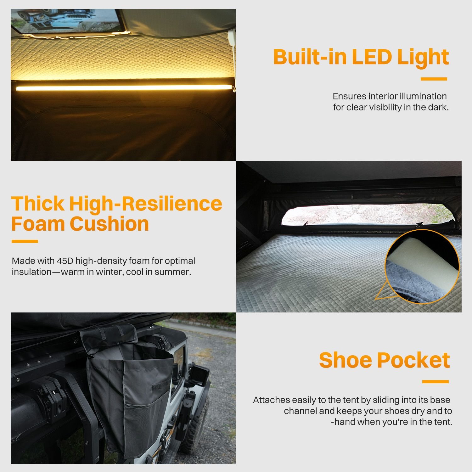 Long-Lasting Quality and Sturdiness: This rooftop tent combines the durability of an aluminum alloy shell with the resilience of 300D high-density Oxford fabric, providing a robust and sturdy shelter that can withstand various outdoor conditions, offering campers a reliable and comfortable camping solution for years to come.