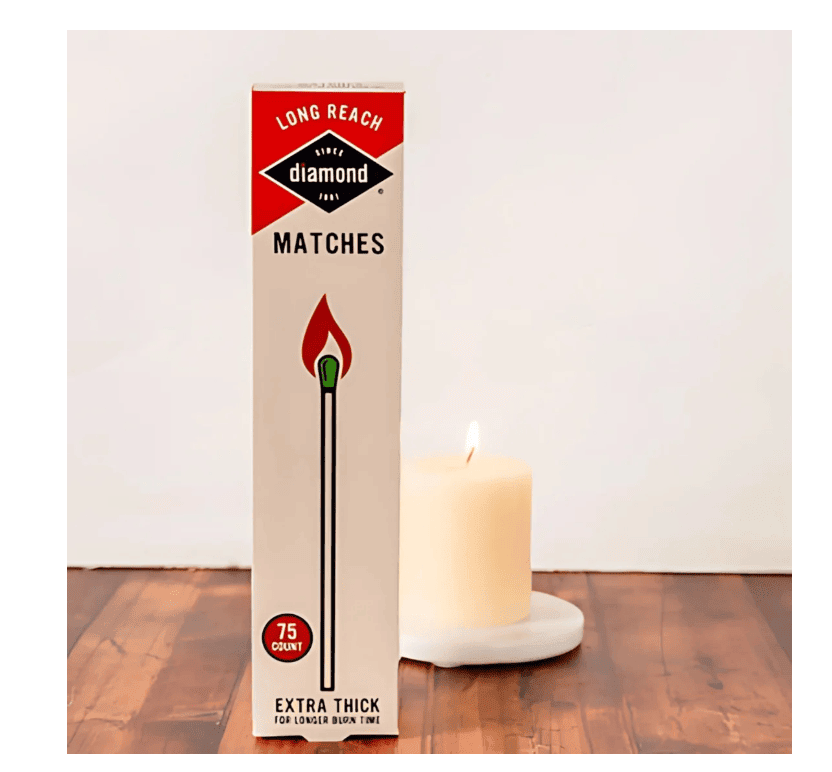 Make lighting safer and easier with Diamond® Long Reach Matches — the perfect choice for candles, grills, fireplaces, firepits, and more! Designed with extra-long sticks to keep your hands safely away from the flame, these matches are a household essential for everyday use and outdoor adventures.