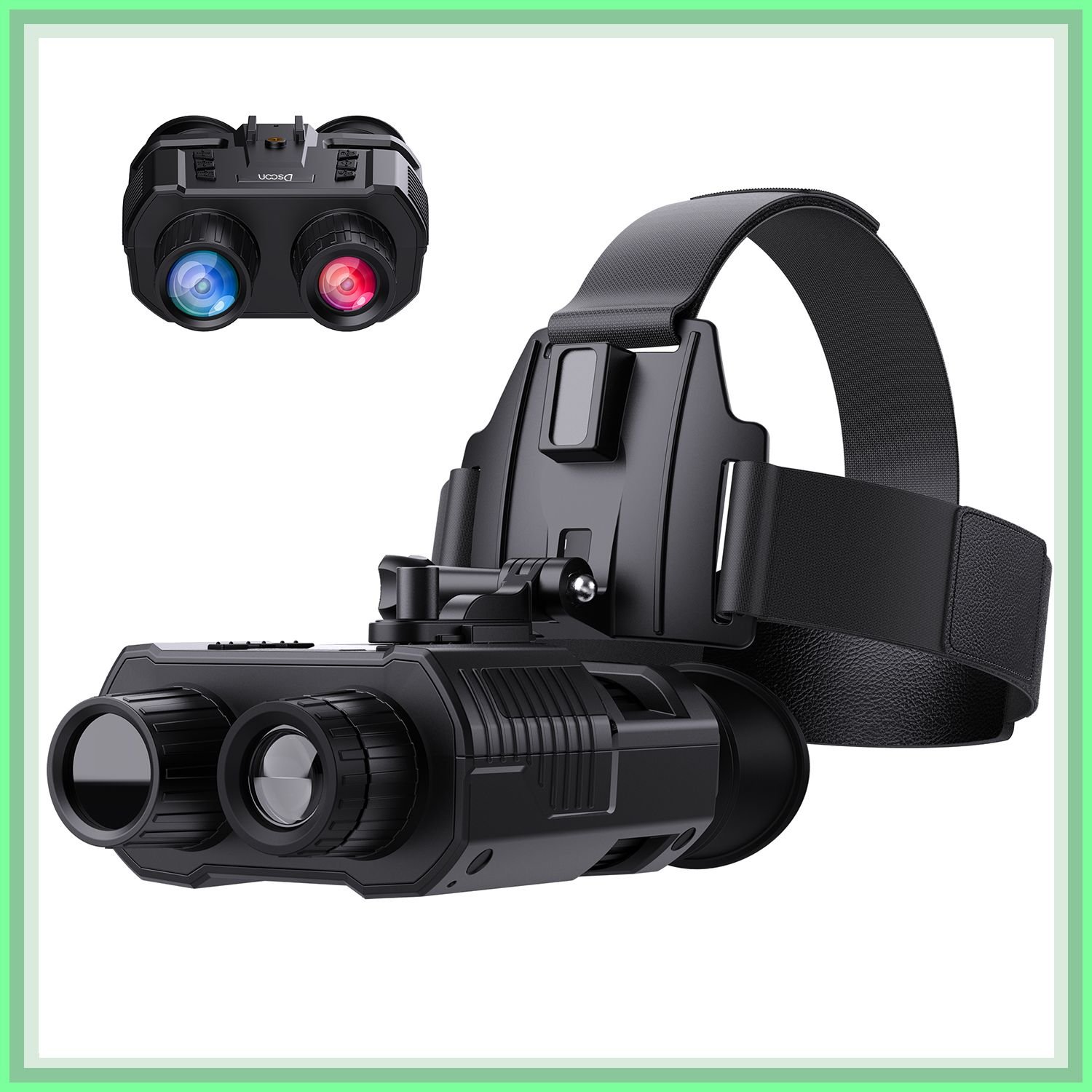 The Helmet Night Vision Binoculars feature a No-Glow INFRARED ILLUMINATOR. High-definition images with 2048x1536 pixels; 1920x1080@ 30FPS video. The body's unique non-slip and 6-button design is easy to use.Thanks to our powerful 850 NM infrared illuminator; you can hunt; monitor wildlife; explore the wilderness or protect your farm during a pitch-dark night – NO external light needed!